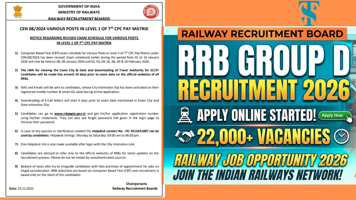 रेलवे ग्रुप डी भर्ती 2026 Last Date | रेलवे ग्रुप डी परीक्षा तिथि 2026 | RRB Group D Recruitment 2026 apply Online