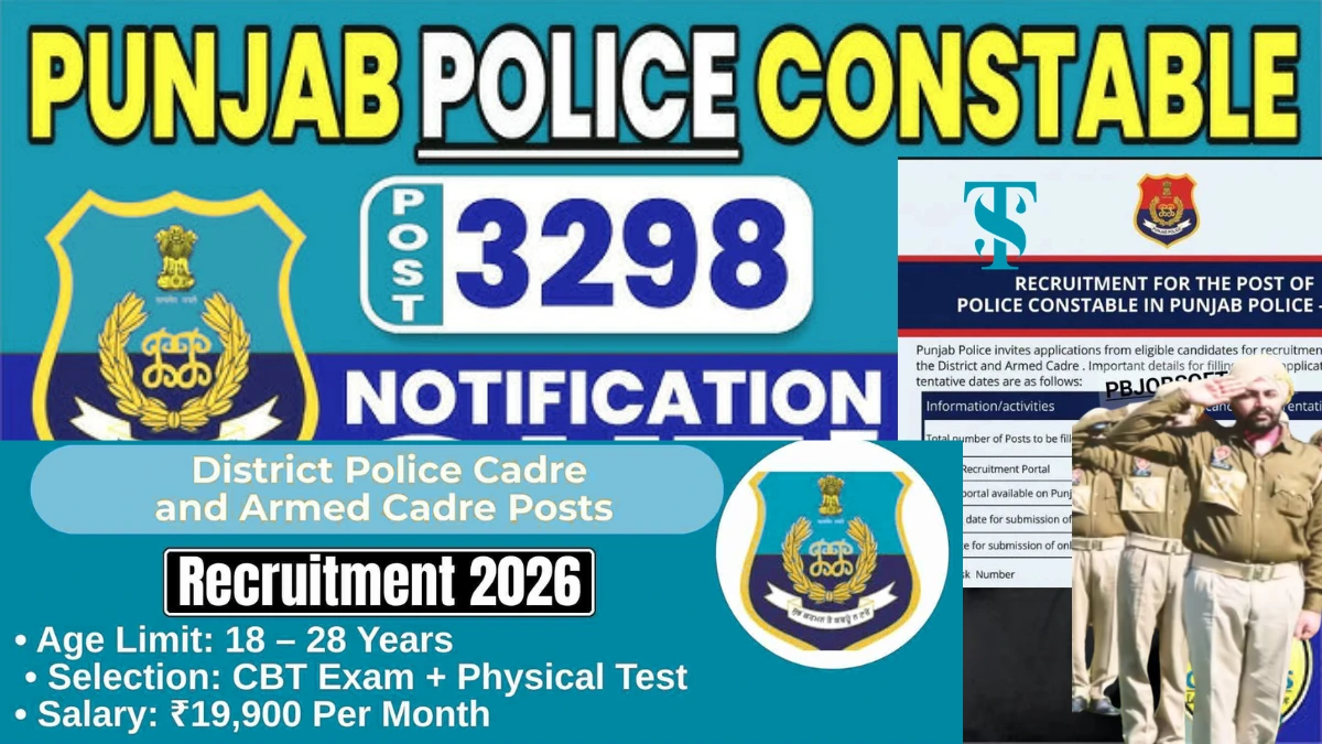 पंजाब पुलिस कांस्टेबल भर्ती 2026: 3298 पदों के लिए आवेदन शुरू, योग्यता व चयन प्रक्रिया देखें